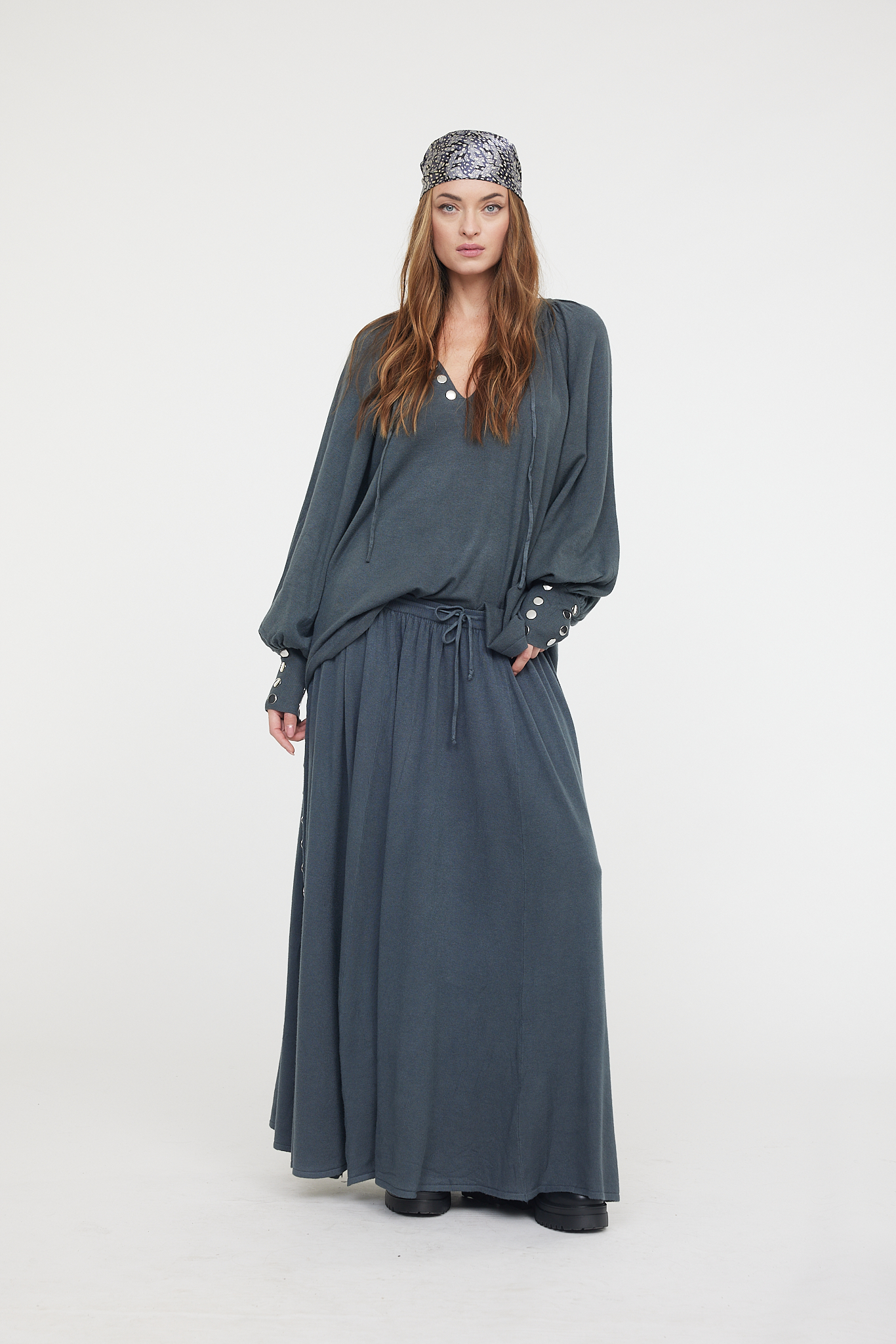 Son encolure en V et ses manches longues bouffantes soulignent un esprit bohème moderne et féminin. Facile à associer, il s’accorde parfaitement à la jupe Chaviva pour un ensemble harmonieux et élégant.