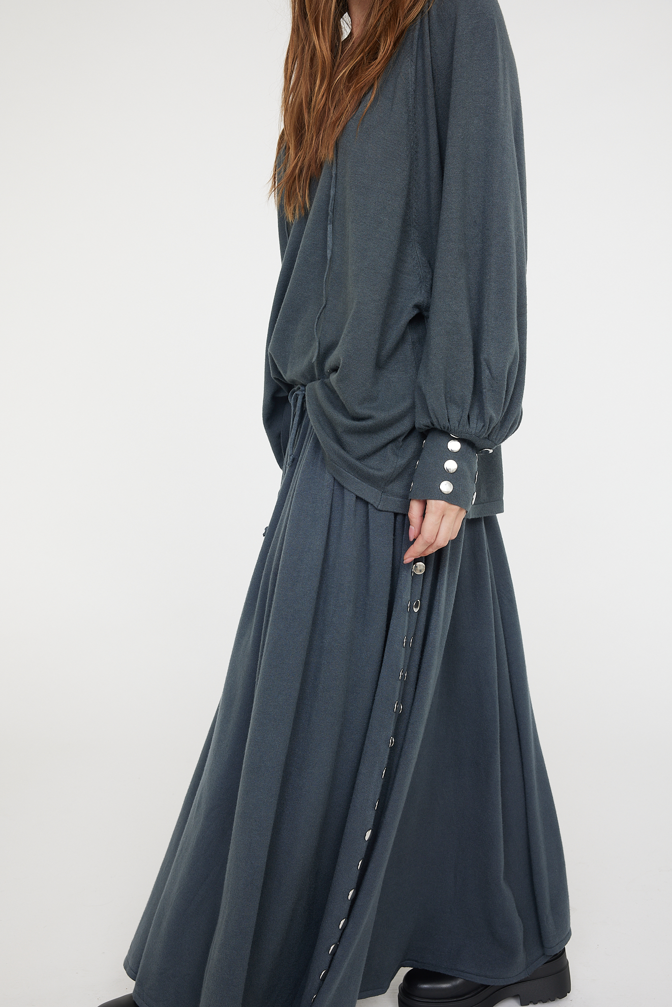 Le top Chirae séduit par sa coupe ample et fluide qui épouse les mouvements avec légèreté. Confectionné dans une maille douce et confortable, il est ponctué de détails métalliques au col et aux poignets, pour une subtile note d’éclat.
