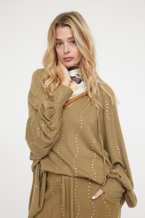 Le top Chirae séduit par sa coupe ample et fluide qui épouse les mouvements avec légèreté. Confectionné dans une maille douce et confortable, il est ponctué de détails métalliques au col et aux poignets, pour une subtile note d’éclat.