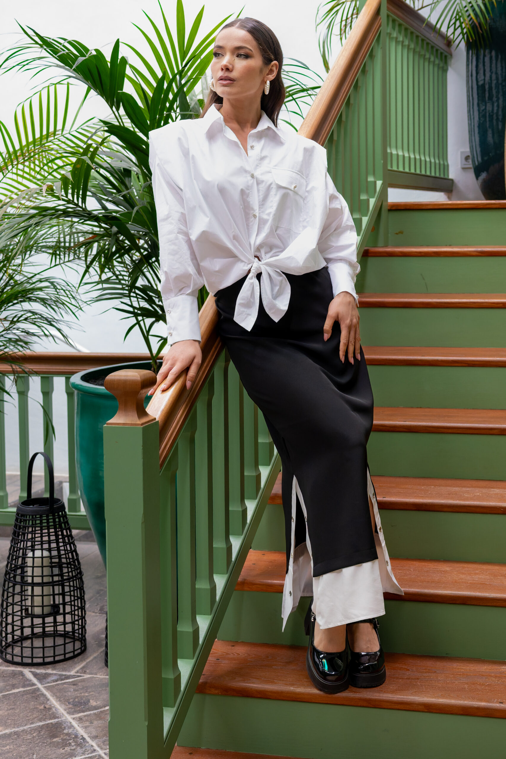 La jupe Colette en noir dévoile une coupe longue et près du corps qui met en valeur la silhouette avec sobriété. Son motif à carreaux apporte du caractère, tandis que le jeu de superposition avec l’empiècement rayé en bas crée un contraste subtil et du mouvement. La fente latérale ajoute une touche féminine et de l’aisance. Une pièce chic, moderne et facile à porter, en total look ou avec des essentiels.