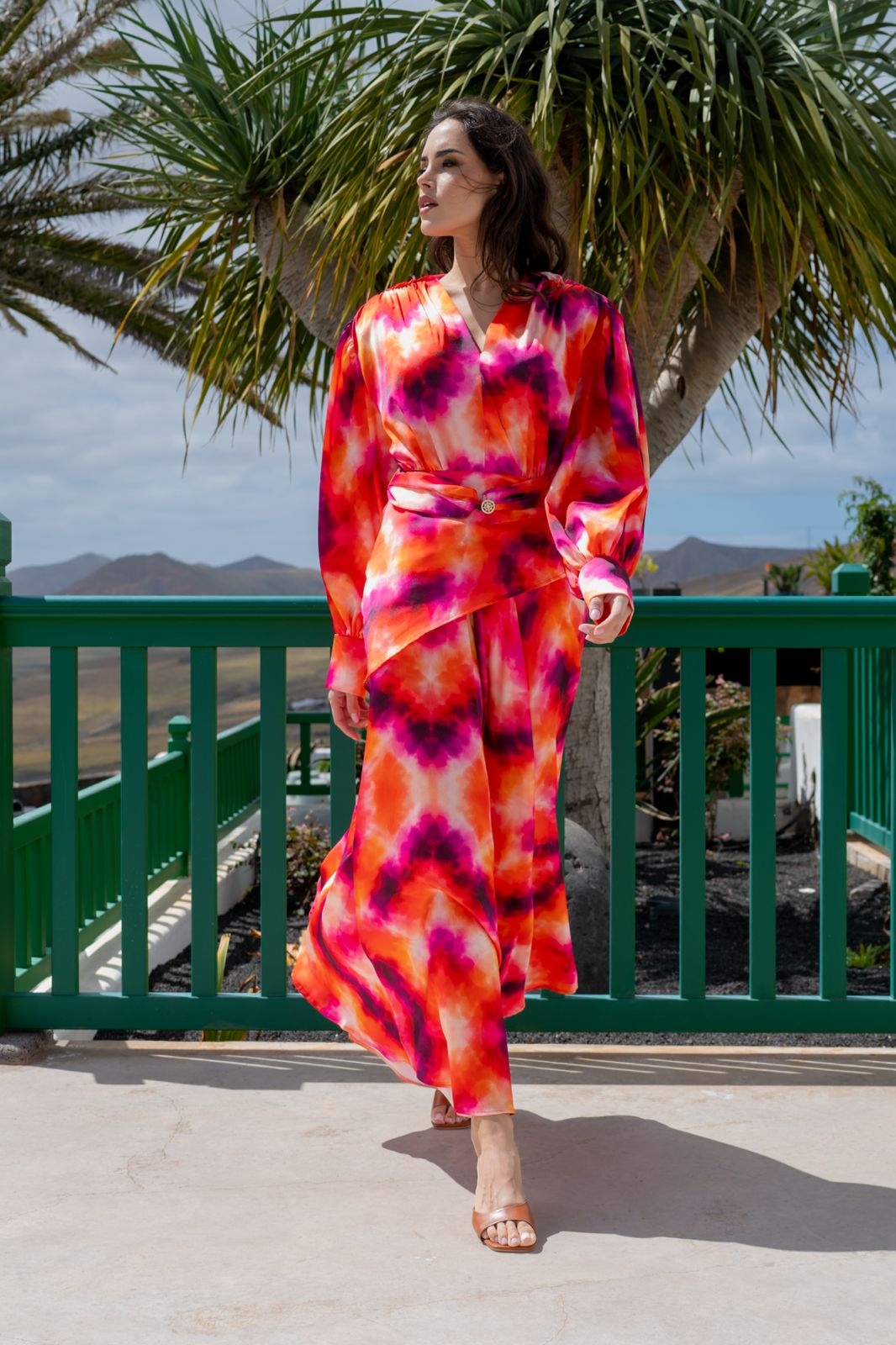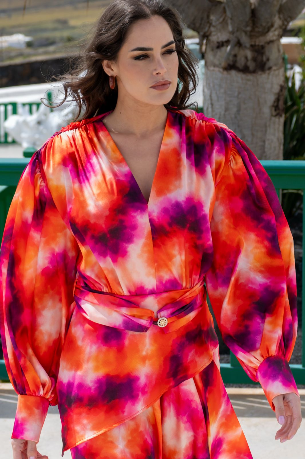 Les manches longues et volumineuses apportent du mouvement et renforcent son allure sophistiquée.
