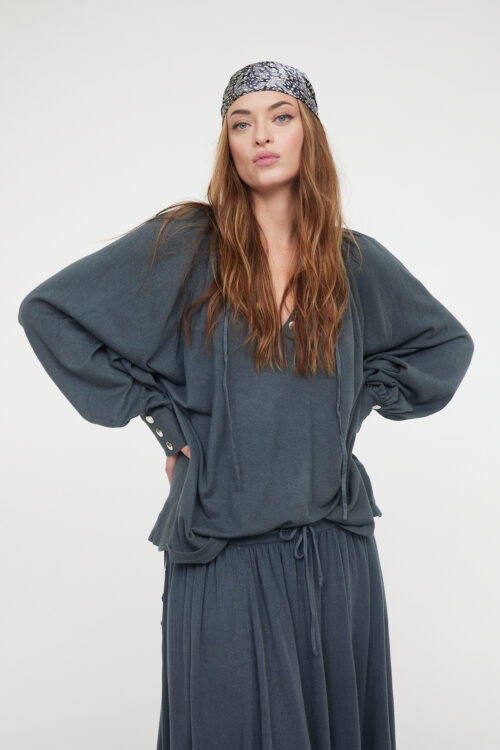 Confectionné dans une maille fluide et légère, le pull Léa se distingue par sa coupe oversize et ses manches longues à effet chauve-souris. Les lignes de perles brodées apportent une touche de brillance subtile, parfait équilibre entre décontraction et sophistication. Facile à porter, il s’associe aussi bien à un jean qu’au pantalon Tal assorti pour un look effortlessly chic.
