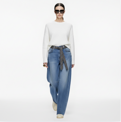 Le pantalon Lila est un jean large à détails contrastés, pensé pour une silhouette décontractée et contemporaine.