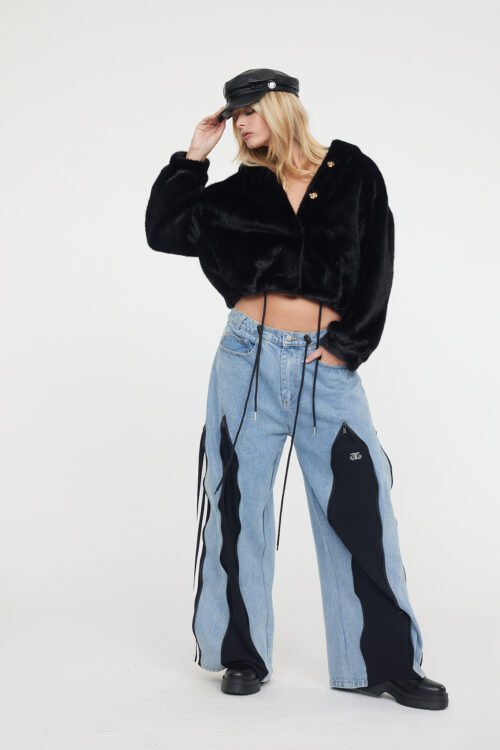 Sa coupe fluide et taille haute élance la silhouette, tandis que ses plis structurés et ses œillets métalliques lui apportent un esprit couture subtil. Conçu dans une matière souple au tombé impeccable, il offre un confort absolu et un mouvement naturel.