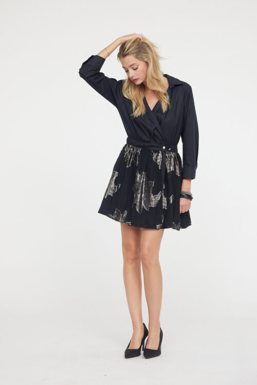 Sa coupe fluide et ses volants successifs créent un jeu de mouvement léger et harmonieux, tandis que les boutons dorés apportent une touche lumineuse et précieuse. La dentelle chocolat, riche et profonde, sublime la silhouette tout en conservant un esprit bohème chic.