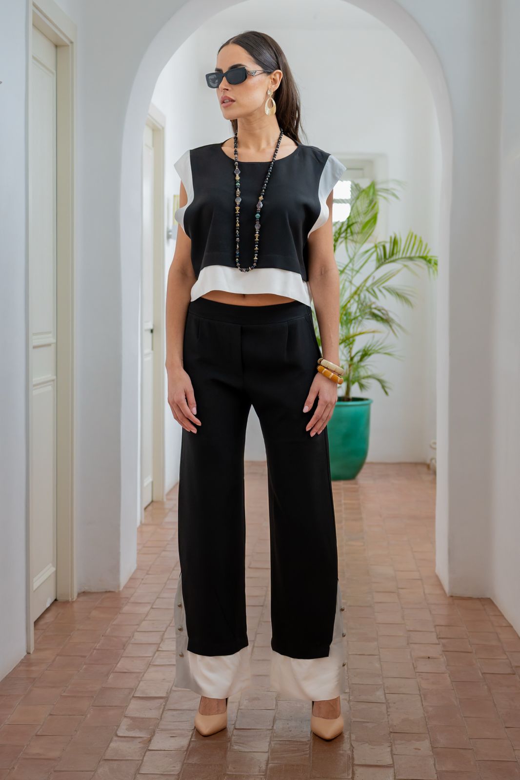Son imprimé à carreaux apporte une touche classique revisitée, tandis que les finitions contrastées au bas du pantalon ajoutent du caractère à la pièce. Facile à associer, il se porte aussi bien avec un top simple qu’en ensemble coordonné pour un look plus affirmé.