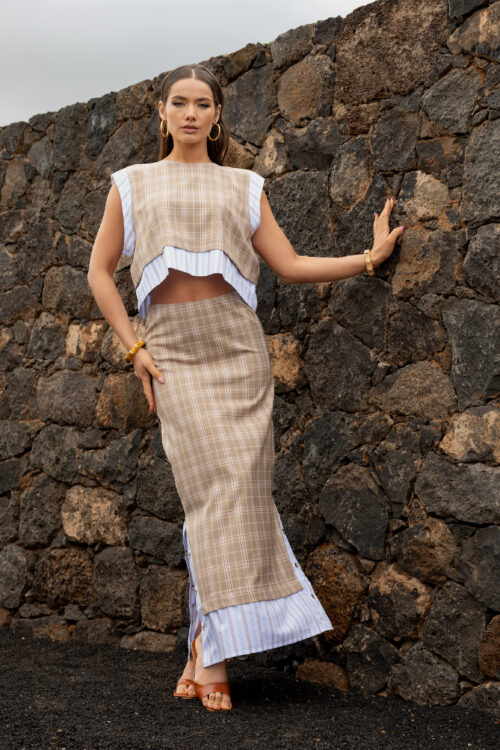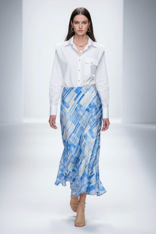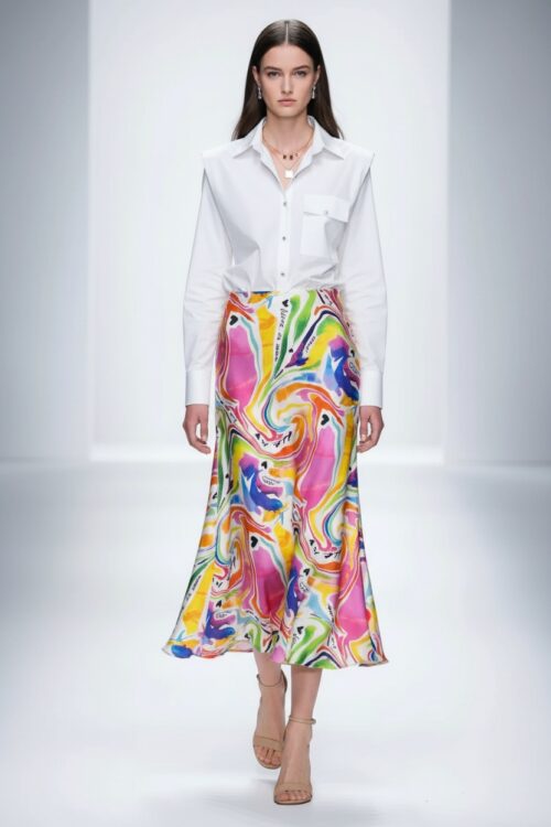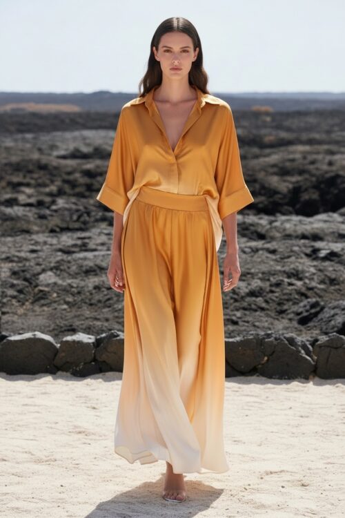 La jupe Venise se distingue par sa coupe longue et aérienne qui accompagne chaque mouvement avec légèreté. Sa matière fluide crée un tombé souple et raffiné, tandis que l’effet dégradé apporte profondeur et modernité à la silhouette. Sa taille confortable souligne la ligne sans contrainte, pour une allure féminine et sophistiquée. Portée avec la chemise Fortune assortie, elle compose un ensemble fluide et élégant, parfait pour un look chic et effortless.