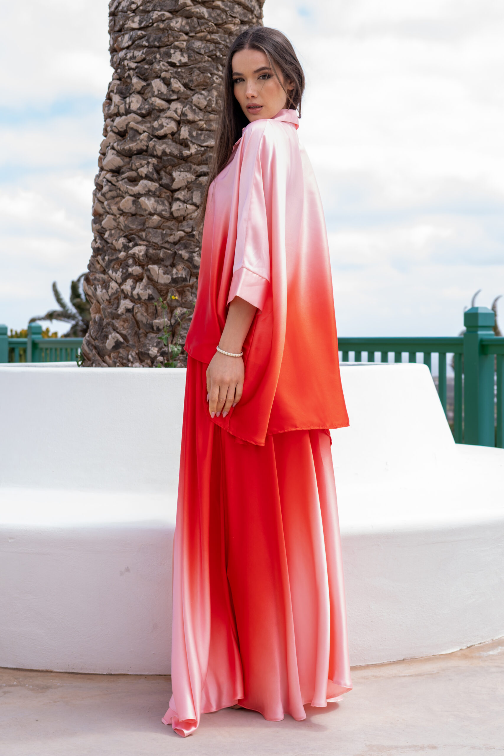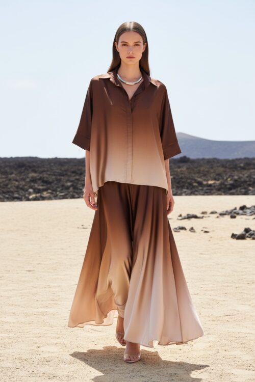 La jupe Venise se distingue par sa coupe longue et aérienne qui accompagne chaque mouvement avec légèreté. Sa matière fluide crée un tombé souple et raffiné, tandis que l’effet dégradé apporte profondeur et modernité à la silhouette. Sa taille confortable souligne la ligne sans contrainte, pour une allure féminine et sophistiquée. Portée avec la chemise Fortune assortie, elle compose un ensemble fluide et élégant, parfait pour un look chic et effortless.